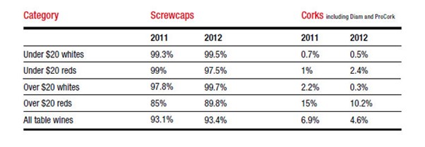 This accompanying table offers a remarkable snapshot of the closures used for the table wines submitted this year. Those who suggest that screwcaps are inferior to other closures are clearly out of step.