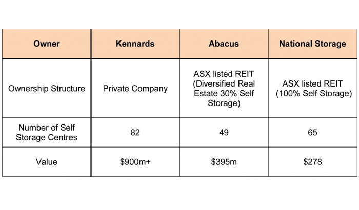Australia has just 2 REIT’s with self storage assets and only one pure self storage REIT.